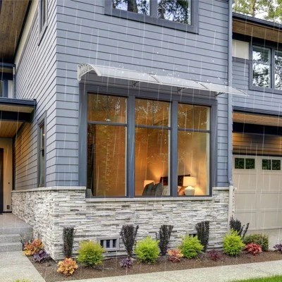 Build a mini shelter for resisting rain or scorching sun at the gate or window! You may feel it wonderful by using our 100 x 96 cm Household Application Door and Window Rain Cover Eaves Canopy! This is a superb design integrating high-class ABS and polycarbonate materials, durable and wear-resistant to use. Aluminum bracket could strongly sustain this canopy. It bulges to shape a small shield. Quite easy to install and remove! It also acts a decoration for your house!
