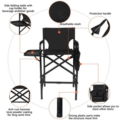 - IDEAL WORKING ASSISTANT:This director’s chair is an ideal work assistant for beauty makeup artists and motion picture directors, actors, or staff. It allows you to raise your position, to better see the full field of vision and master the audience, but also allows you to make up and work better.