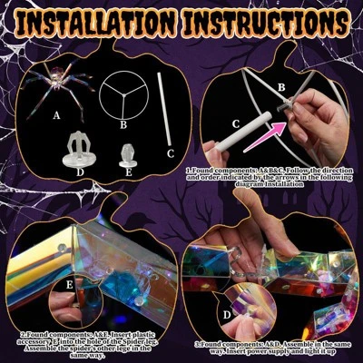Turn your yard into a haunted Halloween showcase with this stunning 3ft light-up spider decoration. Prelit with 340 brilliant purple LED lights, this iridescent spider creates an eerie glow that instantly becomes the centerpiece of your outdoor display. Made with weather-resistant materials and a sturdy structure, it’s perfect for both indoor and outdoor use. Whether placed on your lawn, porch, or garden, this large illuminated spider adds a creepy, festive touch to your Halloween setup, captivating guests and trick-or-treaters alike.