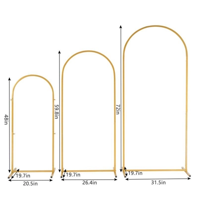 - Includes three golden archways (5.9ft, 4.9ft, 3.9ft) for a stunning tiered effect.