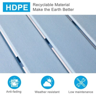 - All-Weather Material: Constructed with robust HDPE material, this outdoor bench is engineered to withstand the elements. From blazing sunlight and heavy snowfall to gusty winds, this bench remains resilient. Unlike wooden benches, it is impervious to fading, denting, cracking, peeling, and rotting. The sturdy steel legs provide additional stability, ensuring a reliable and secure seating option.