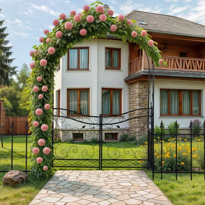 Enhance your garden or outdoor space with our stylish and durable 7.2ft Black Arc Top Iron Gate with Door & Fence. This elegant arched gate features a sturdy iron construction with a black finish, adding a touch of classic charm to any entrance, yard, or garden. The door provides convenient access, while the attached fence ensures security and a polished look. Perfect for driveways, pathways, or as a decorative garden accent, this gate combines functionality with aesthetic appeal.