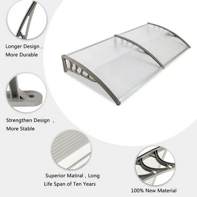 Build a mini shelter for resisting rain or scorching sun at the gate or window! You may feel it wonderful by using our 200 x 100 Household Application Door and Window Rain Cover Eaves Canopy! This is a superb design integrating high-class ABS and polycarbonate materials, durable and wear-resistant to use. Aluminum bracket could strongly sustain this canopy. It bulges to shape a small shield. Quite easy to install and remove! It also acts a decoration for your house! Don’t miss such a good chance!