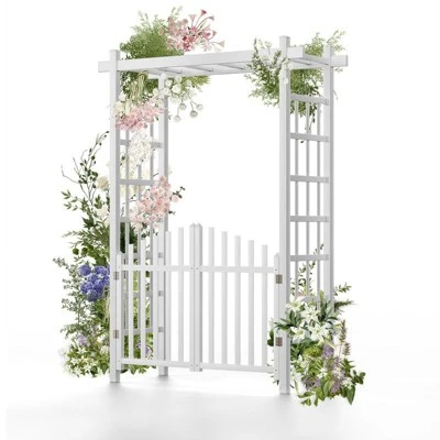 - The garden arch is for climbing vines, while the double gates decorate the entrance.