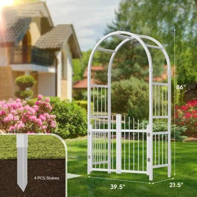 - The garden arch is for climbing vines, while the double gates decorate the entrance.