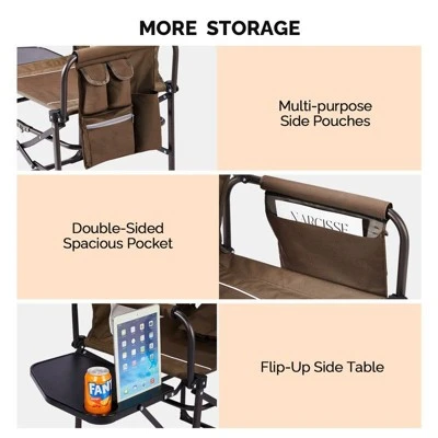 Karl Home 30in Portable Folding Director Chair With Collapsible Side Table Black