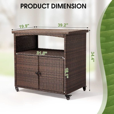 - Elegant and Versatile Aesthetic: The sophisticated rattan finish complements any outdoor or indoor space, adding a touch of elegance to your décor. Whether used as a serving station at a poolside party or as a stylish storage piece on your patio, this cart enhances your setting while offering practical functionality.