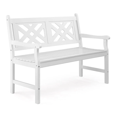 - Ergonomic Design: Our outdoor wood bench features an ergonomic design that comfortably accommodates nearly all body types. The wide armrests provide excellent support, while the unique geometric backrest and slatted seat ensure comfort