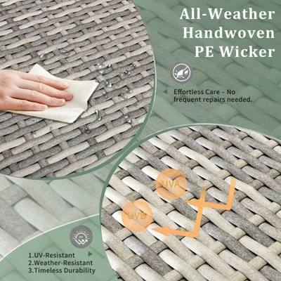 - All-Weather PE Rattan: The exquisite handwoven PE rattan construction is designed to withstand various weather conditions, ensuring long-lasting durability.