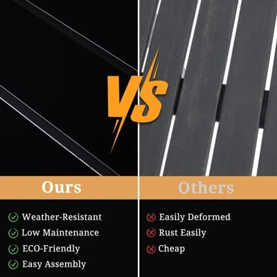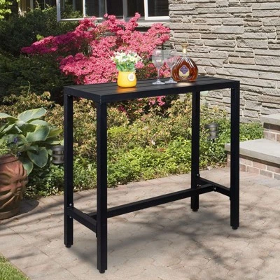 This outdoor bar table offers a sleek spot for two to enjoy drinks or snacks on your patio or balcony. Crafted from iron with a metal top, it features a slatted design that adds a hint of texture to your space. The rectangular tabletop provides just enough room for your favorite beverages and a small plate of appetizers. With its black finish, this table blends seamlessly with a variety of outdoor decors. Plus, it comes with adjustable rubber feet to ensure stability on uneven surfaces. It’s a practical choice for compact outdoor spaces.