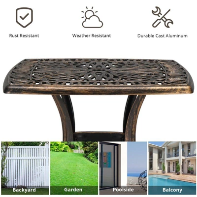 How about spending a relaxing afternoon with your friend in your garden? All you need is a nice cup of coffee and a dining table. We recommend this 21.3inch Square Garden Cast Aluminum Table for you. This iron table is more durable than regular table. That makes our tables against severe weather and ensure longer service life. The powder coated steel iron smooth, which can be quickly wiped. Useful and good looking, this table will not disappoint you.