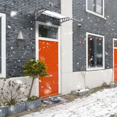 Build a mini shelter for resisting rain or scorching sun at the gate or window! You may feel it wonderful by using our 100 x 80 Household Application Door and Window Rain Cover Eaves Canopy! This is a superb design integrating high-class ABS and polycarbonate materials, durable and wear-resistant to use. Aluminum bracket could strongly sustain this canopy. It bulges to shape a small shield. Quite easy to install and remove! It also acts a decoration for your house! Don’t miss such a good chance!