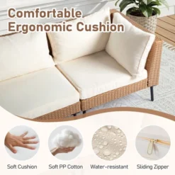Karl Home Patio 6-Piece Yellow Wicker Sectional Sofa With Beige Cushions