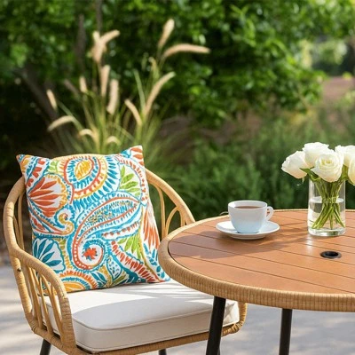 - All-Weather Wicker: Handwoven wicker and a durable slatted tabletop resist fading, moisture, and high temperatures for year-round use.